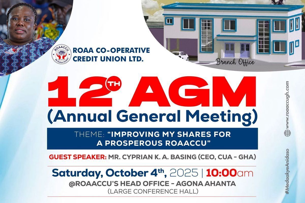 Join us for the 12th Annual General Meeting under the inspiring theme: “Improving My Shares for a Prosperous ROAACCU”. This important gathering is a prime opportunity to connect, share insights, and strategize for a brighter future. Attendees are encouraged to obtain a minimum of GHS 500.00 in shares to participate as part owners. Don’t miss this chance to be part of a dynamic community dedicated to growth and prosperity. 🚀