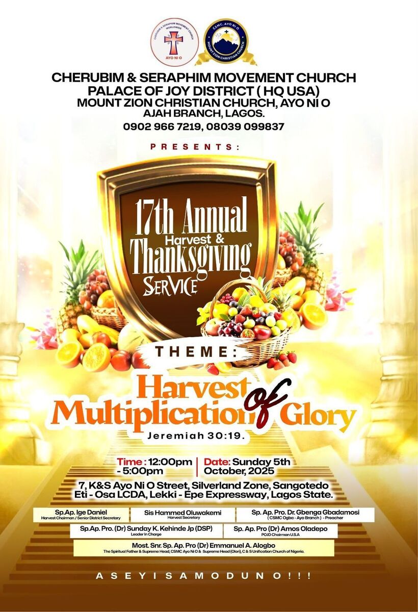 #HarvestOfGlory, #ThanksgivingService, #CherubimSeraphimChurch