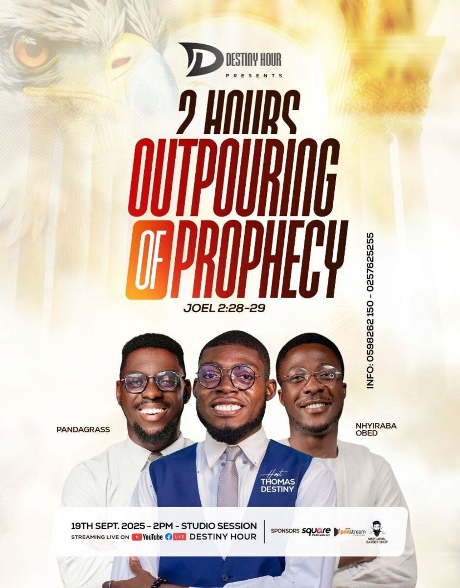 Participate in a powerful spiritual event where divine prophecies are poured out to uplift and inspire. Connect with a community eager for divine intervention and spiritual blessings. The event features renowned ministries and pastors including @Squaretvgh, @Kofi Pandagrass, Nhyiraba Obed Ministries, Destiny Hour, Pastor Agyemang Elvis, and Pastor Chris. Experience a night of prophetic declarations, spiritual empowerment, and divine encounters. Don't miss this divine moment to receive your breakthrough and blessings! ✨✨✨