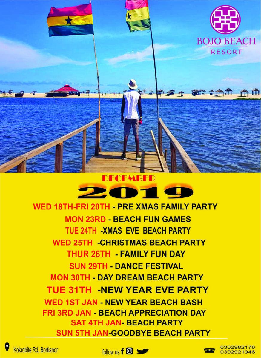 Bojo Beach Resort presents 2019 Xmas Beach Party. There will be more exciting Games,Entertainment,Boat Cruising,Food,Drinks,Live DJ, Live Band,Acrobatic Display and Family gathering