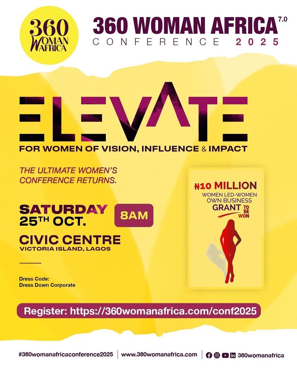 🌍 Empowerment & Leadership for Women in Africa! Join us at the prestigious 360 Woman Africa Conference and Grant Award 2025 — an inspiring gathering dedicated to women of influence, vision, and impact across the continent. This event is your opportunity to connect with visionary women, industry leaders, and change-makers shaping Africa’s future.