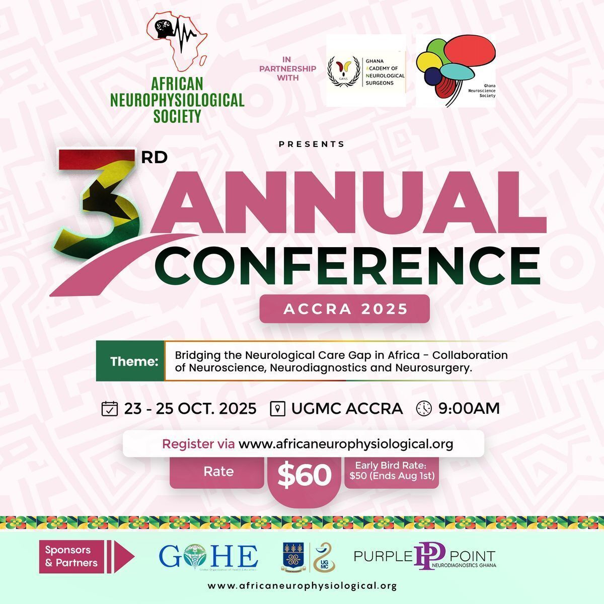 #ANSConference2025, #BrainHealthAfrica, #NeuroscienceAfrica, #NeuroDiagnostics, #Neurosurgery, #Accra2025, #AfricanHealth, #MedicalConference, #UGMC, #AfricanNeurophysiologicalSociety