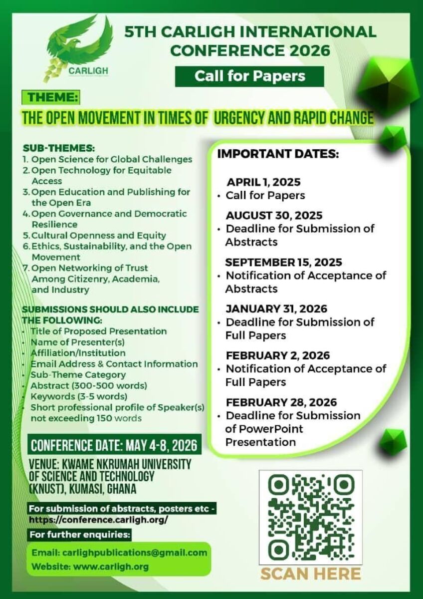 Join us for the highly anticipated 5th CARLIGH INTERNATIONAL CONFERENCE, a premier event dedicated to advancing knowledge sharing, research, and collaboration among academic and industry professionals. This conference offers a vibrant platform for researchers, librarians, academics, and industry experts to exchange innovative ideas, present cutting-edge research, and network with peers from around the globe. 🌍✨