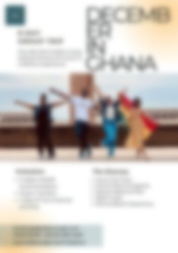 Day 1: Airport Pickup + Welcome Mixer | Touch down and get your first taste of Ghanaian vibes! Welcome dinner and rooftop party with a view of the city.