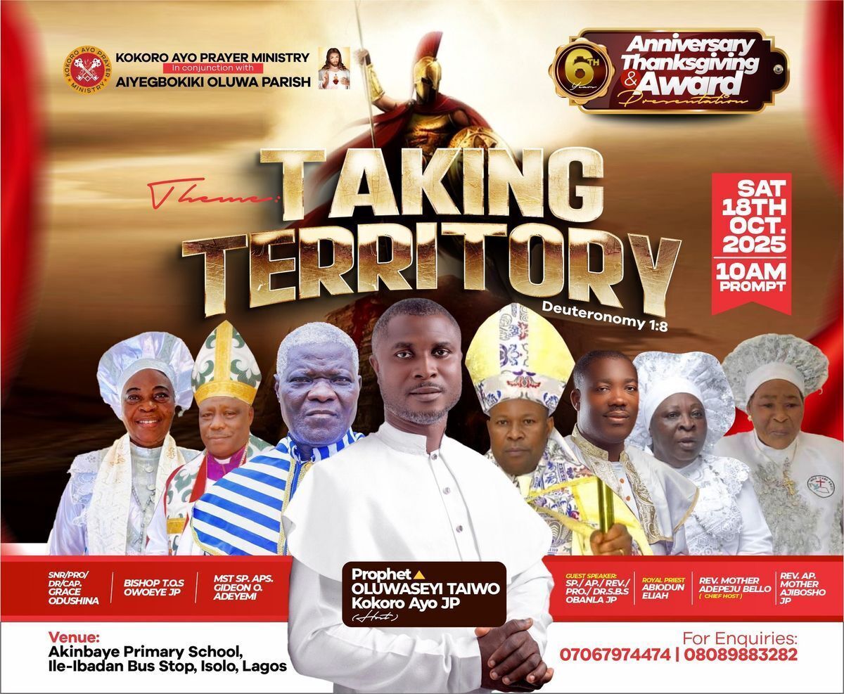 π Join us in celebrating a momentous milestone! Kokoro Ayo Prayer Ministry invites you to a heartfelt 6th Anniversary Thanksgiving & Award Presentation ceremony. Experience divine encounters filled with powerful ministrations, inspiring praise, worship, and a celebration of God's goodness in our midst. π