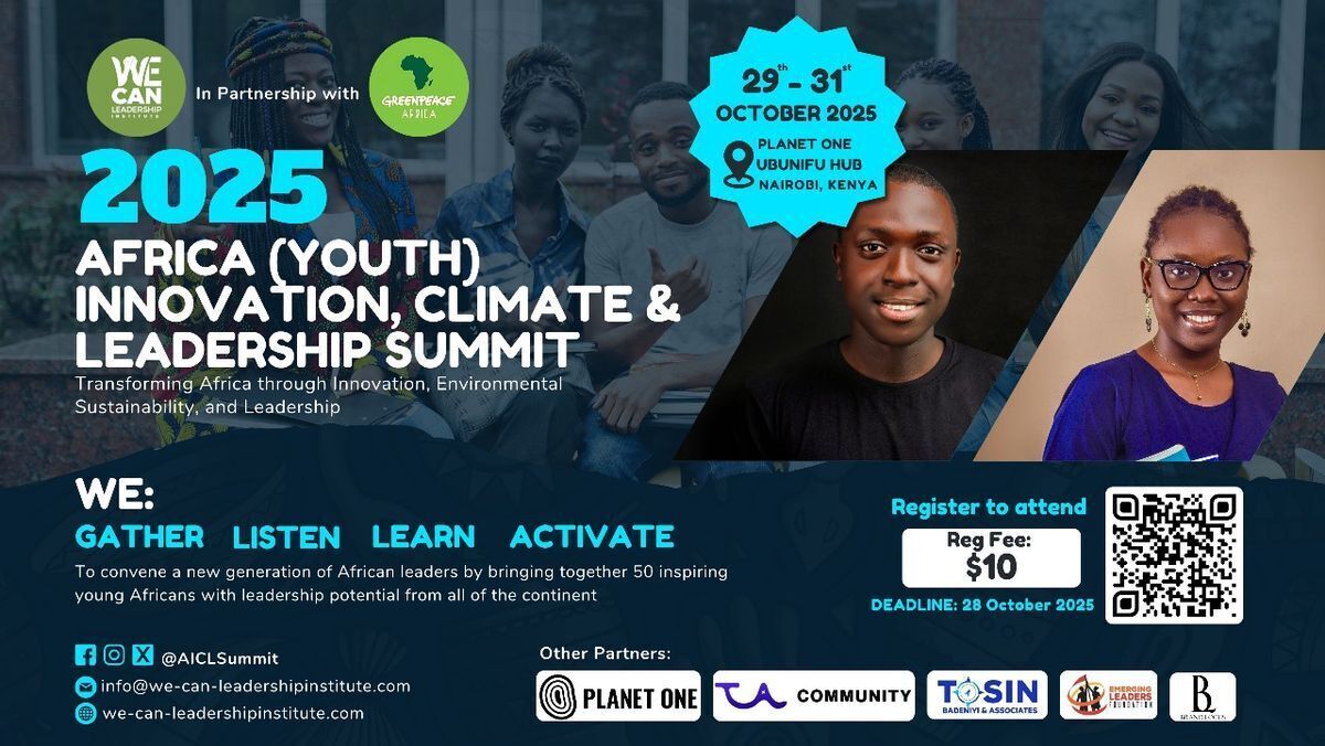 🌍 Join the Future Leaders! The Africa Youth Innovation, Climate and Leadership Summit is a dynamic gathering designed to empower young Africans to lead sustainable change. Hosted at Ubunifu.Hub, this summit brings together innovative minds passionate about climate action, leadership, and community development. Engage in inspiring talks, interactive workshops, and collaborative projects aimed at transforming Africa’s environmental landscape. 🚀 Whether you're an aspiring climate advocate, young entrepreneur, or community organizer, this event offers a platform to connect, learn, and activate impactful ideas. Don’t miss the chance to be part of Africa’s youth-driven movement for a greener, more resilient continent! 🌱✨