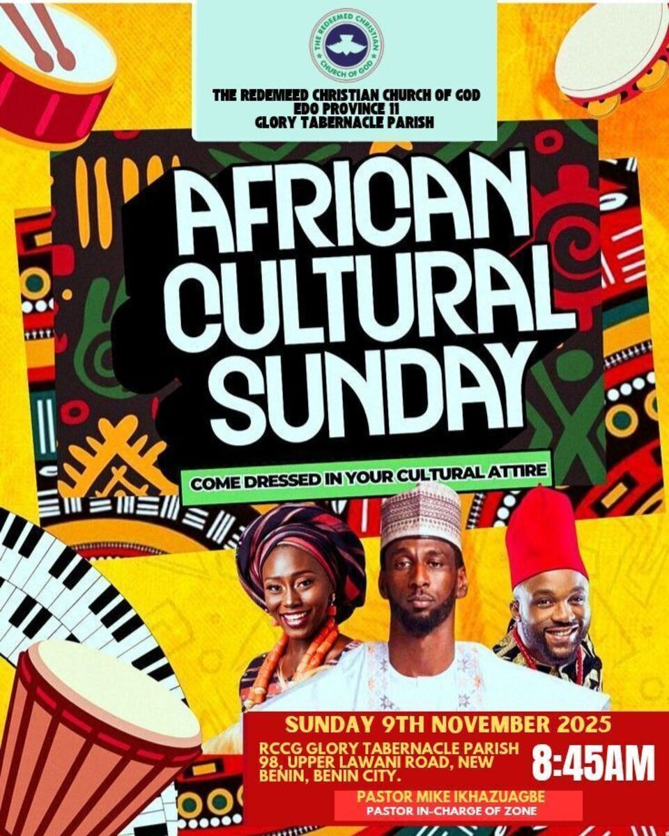 Prepare yourself for an energetic, spirit-filled celebration as RCCG Glory Tabernacle Parish hosts African Cultural Sunday! This vibrant event is a magnificent showcase of heritage, faith, and unity, designed to bring communities together in joy and cultural pride.