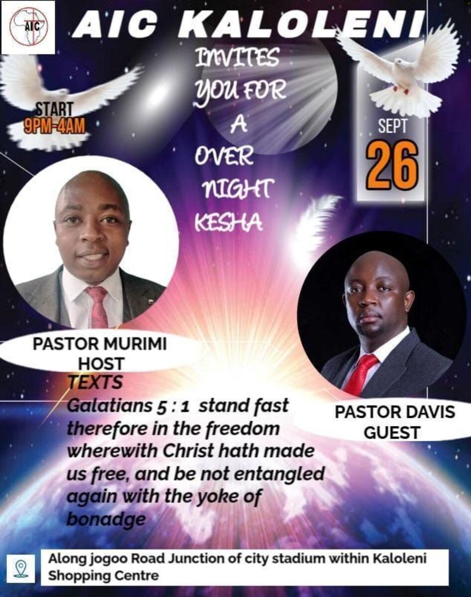Join us for a vibrant and energetic overnight Kesha at Kaloleni Shopping Centre! ๐ Experience a night filled with music, dance, and celebration as we come together to bless and enjoy a memorable event. Whether you're a party lover or just looking to unwind and connect, this event promises an unforgettable experience. Prepare for a lively atmosphere, great company, and spiritual blessings. Don't miss out on this exciting gathering! ๐๐ถโจ