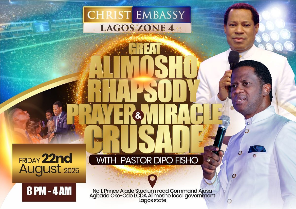 Join us for a powerful spiritual gathering at the Alimosho Prayer and Miracle Crusade. Experience divine miracles, prophetic ministrations, and an atmosphere charged with faith and expectancy. This event is designed to uplift, heal, and transform lives through the mighty power of God's Spirit. Whether you're seeking a breakthrough, healing, or spiritual renewal, this crusade offers a unique opportunity to encounter God's presence in a vibrant, faith-filled environment. Come with an open heart and be prepared for a life-changing experience! β¨π
