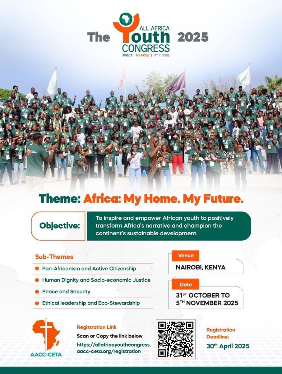Join the vibrant gathering of young leaders and changemakers at the All Africa Youth Congress! 🌍✨ This empowering event is designed to inspire, connect, and elevate youth voices across the continent. Experience engaging workshops, keynote speeches, and networking opportunities with passionate youth from diverse backgrounds. Whether you're looking to collaborate, learn, or showcase your talents, this event offers a dynamic platform to ignite your potential and be part of Africa’s future leaders. Don't miss out on this exciting chance to be part of a movement that celebrates youth empowerment and innovation! 🚀🌟