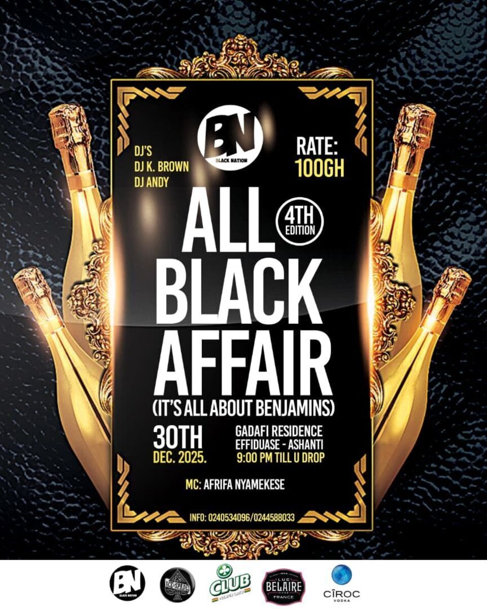 All black affairs is the night where black come to life.its all about fashion n entertainment drink dance and making friends