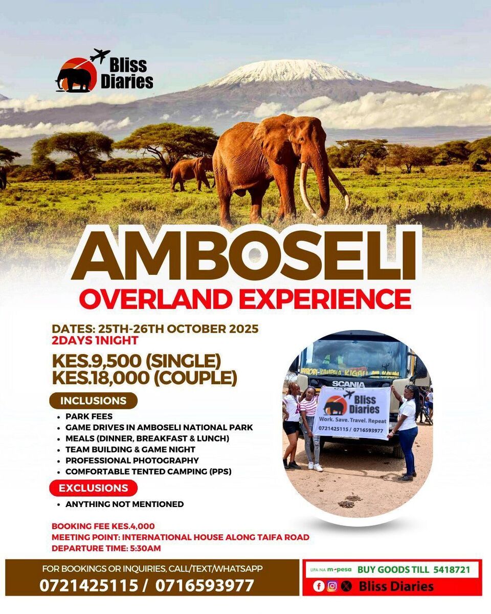 Reserve your spot now with a booking fee of Ksh. 5,000 via Bliss Destinations Adventure or contact us at 0721425115 / 0716593977 for more info. ๐