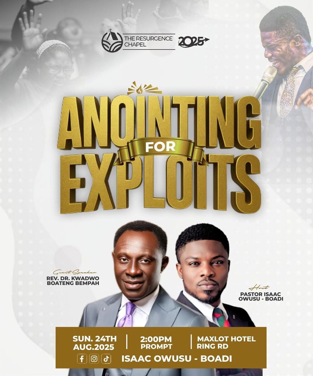 At Maxlot Hotel, Adabraka, come and partake in an intense moment of God's presence with our guest preacher, Rev. Dr. Kwadwo Boateng Bempah from Holy Hill Assemblies of God. This event is not just about observing but about unleashing your potential through the anointing of God for extraordinary exploits! 🚀✨