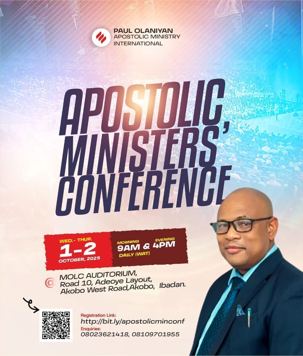 Join us for the APOSTOLIC MINISTERS CONFERENCE 2025! This inspiring event brings together ministers and leaders from across the region for a gathering filled with spiritual enrichment, powerful teachings, and divine encounters. Experience an atmosphere of unity and revival as you participate in impactful sessions designed to uplift and empower your ministry. Whether you're a seasoned minister or a rising leader, this conference offers a unique opportunity to connect, learn, and grow in faith. Don't miss out on this significant spiritual event that promises to ignite your passion for service and deepen your walk with God. ๐โจ