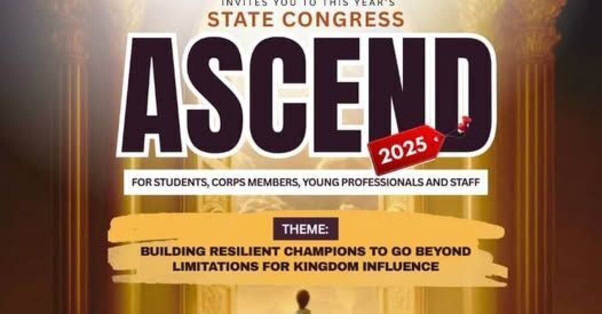 π ASCEND 2025 is a transformative gathering hosted by the Deeper Life Campus Fellowship (Ogun East) State Congress. This life-changing event is designed to inspire, uplift, and empower attendees through powerful salvation experiences, inspiring career talks, a transformative marriage seminar, and intense prayers for breakthroughs. Join us to rise higher and go beyond limitations, building resilient champions for kingdom influence. Expect divine encounters, clear direction, and a divine lift into your destiny! π