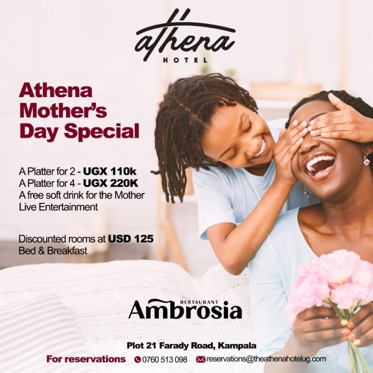 🌸 Celebrate the queen in your life this Mother's Day! Treat her to a delicious Platter for 2 at just UGX 110,000 or a Platter for 4 at UGX 220,000. Every mom receives a complimentary soft drink, and everyone can enjoy live entertainment at Ambrosia Restaurant. 🎶