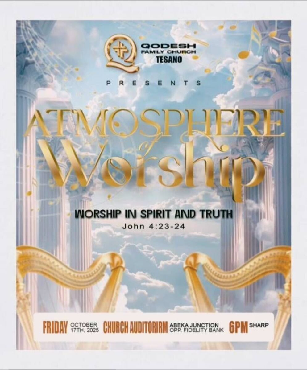 Experience a spiritual uplift at the Atmosphere of Worship 2025! 🌟 Hosted by The Qodesh Family Church in Tesano, this event promises an inspiring time of encounter, breakthrough in worship, and praise. Join us to immerse yourself in powerful worship sessions, connect with fellow attendees, and elevate your spiritual journey. Don't miss out on this impactful gathering designed to revitalize your faith and spirit! ✨🙏