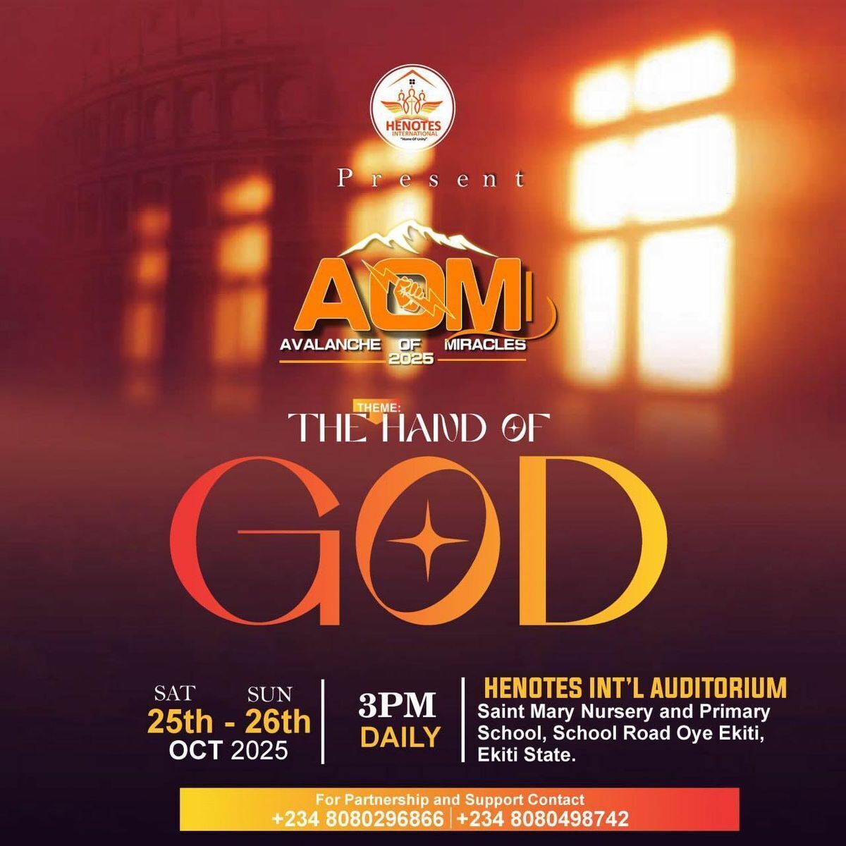 Join us for a powerful spiritual encounter themed “THE HAND OF GOD”. Over two days, experience signs, wonders, and undeniable evidence of God's mighty hand upon His people. Whether you're seeking breakthrough, healing, or just a divine touch, this event promises a life-changing experience.