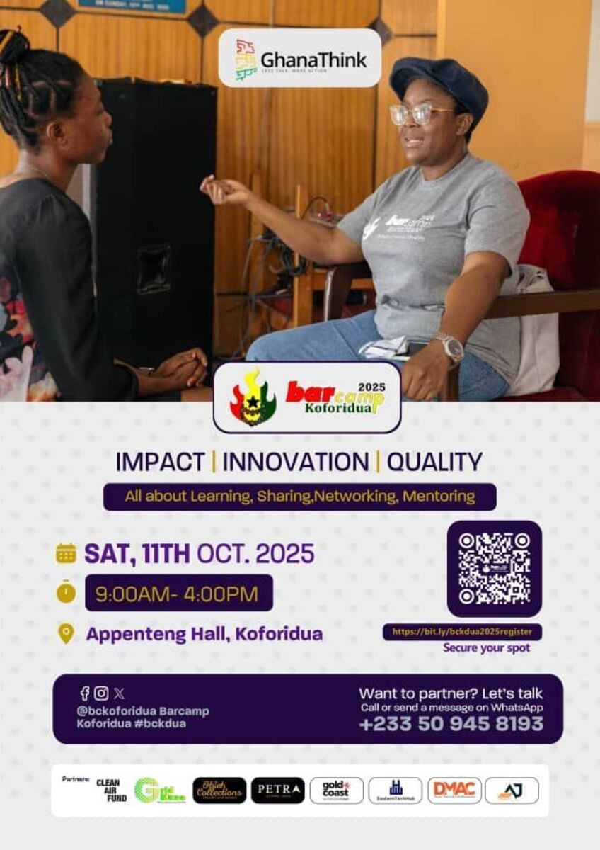 Barcamp Koforidua 2025 is a free networking forum bringing people together for a day of learning, sharing, learning, sharing, networking and mentoring. The theme is "