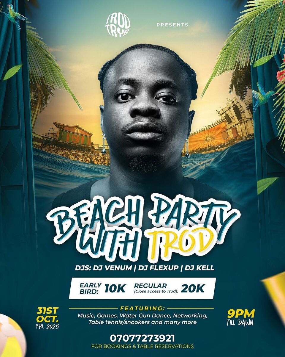 π Get ready for an unforgettable beach experience! Join TROD for a vibrant and lively beach party where good vibes, music, and great company come together. Whether you're there to dance, chill, or make memories, this event promises a fun-filled atmosphere by the sea. Don't miss the chance to reconnect, celebrate, and vibe to amazing tunes. ππΆ