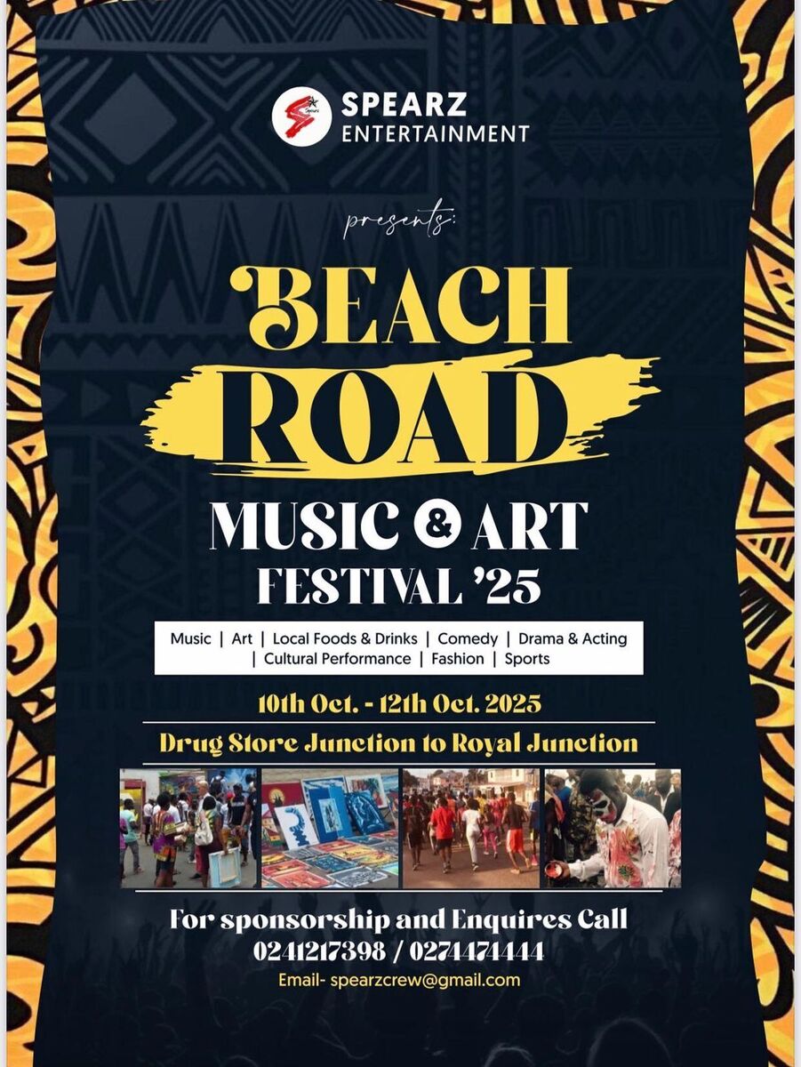 🎶🌊 Get ready for a vibrant celebration of music, art, and culture at the Beach Road Music and Art Festival. Set against the scenic backdrop of Dansoman Last Stop, this festival promises an unforgettable experience with live performances, captivating art displays, and a lively atmosphere. Whether you're a music enthusiast, an art lover, or simply looking for a fun day out, this event offers something for everyone. Dive into a world of creativity and rhythm as local and international artists take the stage. Don’t miss out on this exciting festival that combines the best of musical talent and artistic expression in Ghana! 🎤🎨