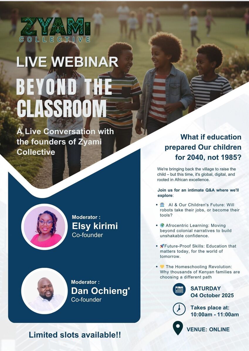๐Join us for an inspiring session called Beyond the Classroom where we challenge traditional education approaches and explore innovative learning methods! Parents and educators, this is your chance to dive into a raw, live conversation about AI, Afrocentric learning, and the homeschooling revolution. No lecturesโjust real talk and engaging discussions about shaping the future of education. ๐ช Entry is through our WhatsApp waiting areaโjoin here: https://chat.whatsapp.com/EdMhYdbHDgbLR95JIL7BKK?mode=ems_copy_t. Limited spaceโif you believe your child deserves more, click that link! ๐โจ