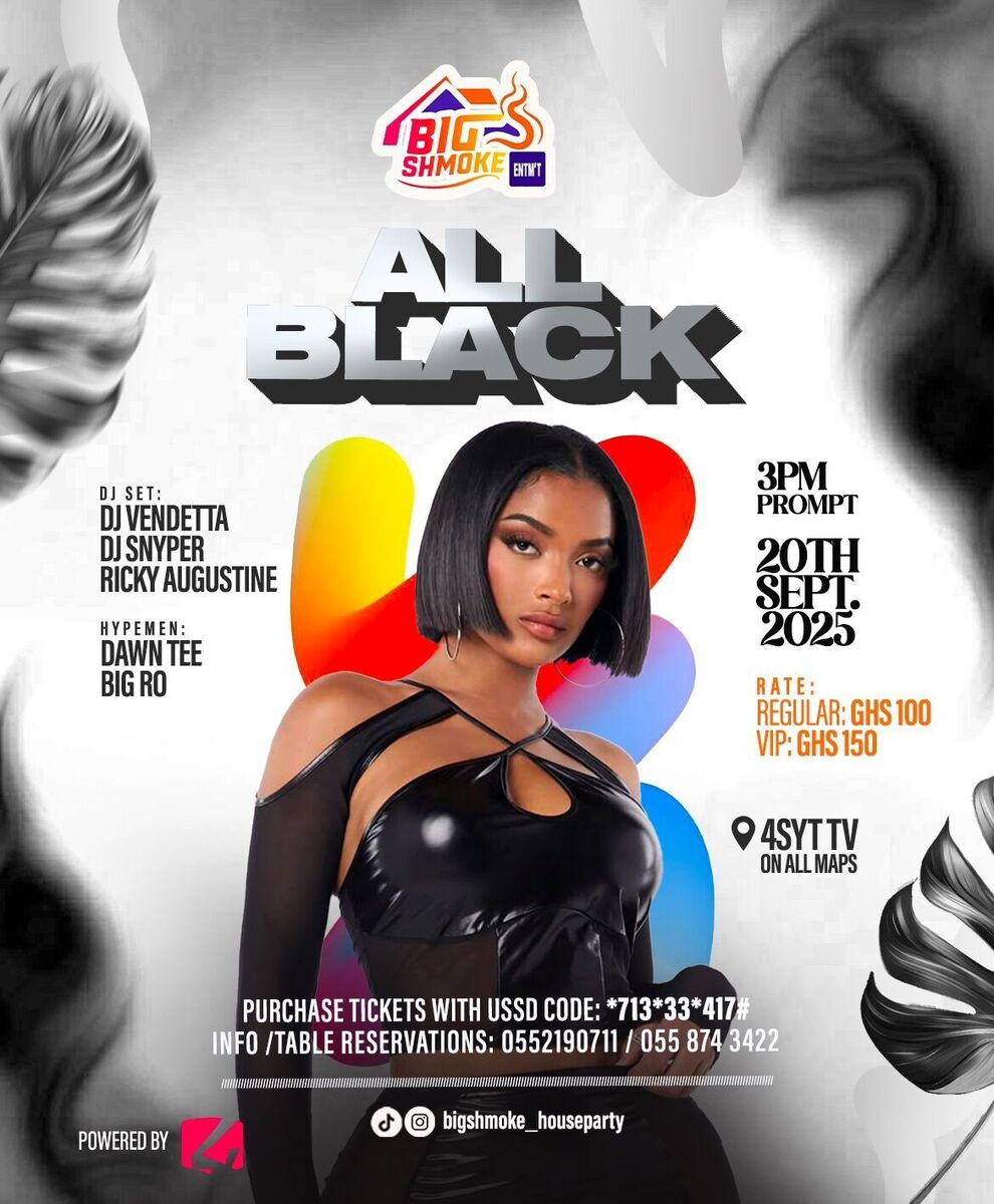Get ready for the hottest night of the year—the BIG SHMOKE ALL BLACK PARTY ! Dress in your sleekest all-black fit and step into an electrifying vibe with top DJs, killer beats, and unmatched energy. this is the ultimate night out.