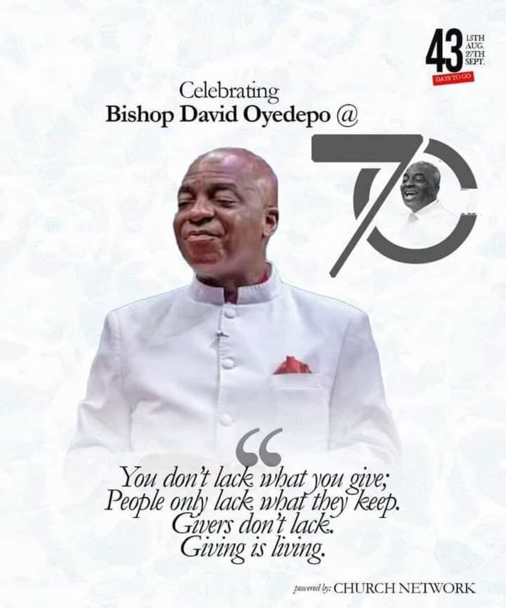 Celebrate a milestone with Bishop Oyedepo as he turns 70! π Join us at Canaan Land Otta for an inspiring event filled with prayers, blessings, and joyful festivities. This special occasion honors a spiritual leader whose influence spans generations. Experience uplifting moments, connect with fellow attendees, and be part of a memorable celebration that highlights faith, hope, and community. Don't miss this unique opportunity to send your blessings and be part of a historic event! πβ¨