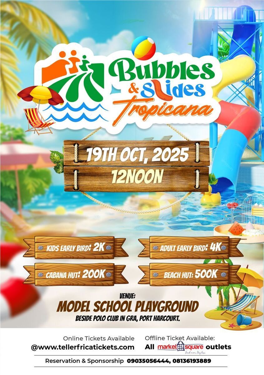 π Dive into a fun-filled adventure at Bubbles and Slides Tropicana! This exciting event offers a spectacular day of bubbly excitement and thrilling slides suitable for all ages. Whether you're a kid eager to splash around or an adult looking to relive childhood memories, this event promises endless joy, laughter, and unforgettable moments. Enjoy a variety of ticket options including Kids Early Bird, Adult Early Bird, Cabana Hut, Beach Hut, and Beach Hut tickets, each designed to cater to different preferences and group sizes. With a vibrant atmosphere, engaging activities, and plenty of photo-worthy moments, Bubbles and Slides Tropicana is the perfect escape for families, friends, and fun-seekers! ππ