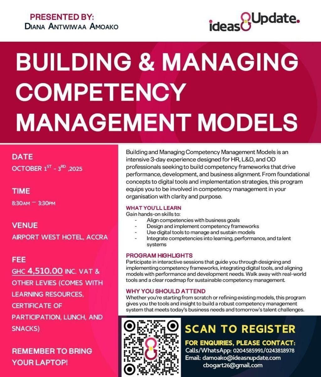 🚀 Build your expertise in competency management! Join us for an intensive 3-day training designed for HR and Learning & Development professionals, talent strategists, and organizational architects. This immersive workshop offers a comprehensive approach to designing, implementing, and sustaining effective competency frameworks that align with your organization’s strategic goals.