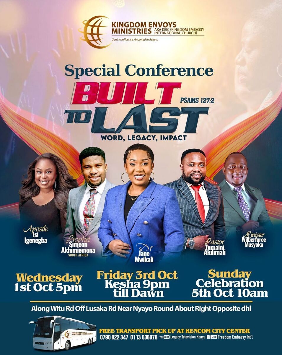 Ministering at the event are Apostle Isi Igenegba, Prophet Simeon, Pastor Tumaini, and Minister Wilberforce Musyoka β anointed vessels ready to pour out God's power and grace. Don't miss this opportunity to be part of a movement that will position you to BUILD TO LAST! βοΈπ