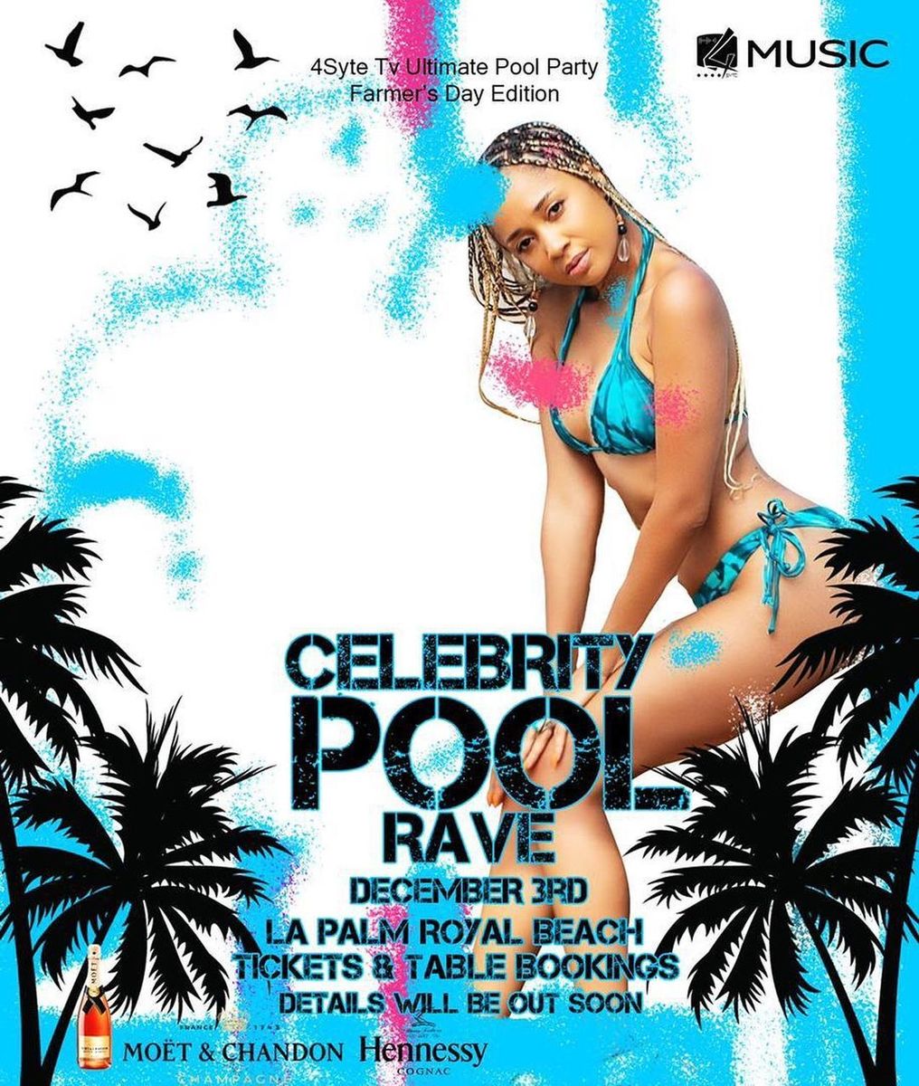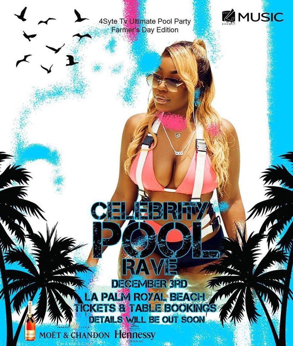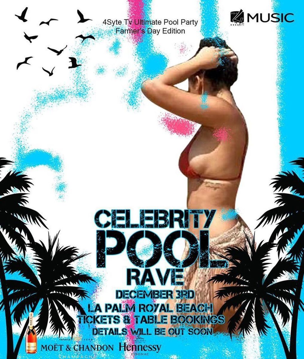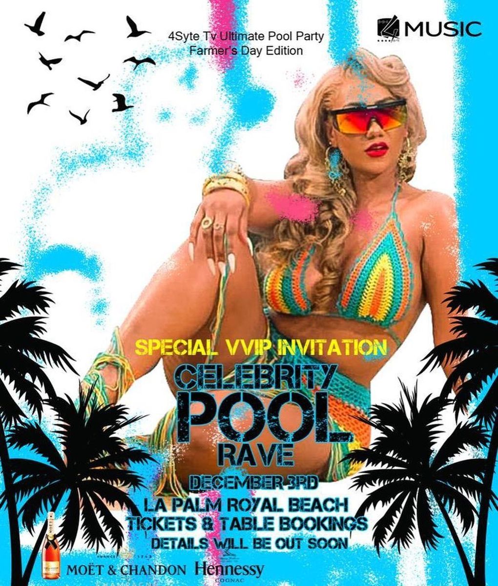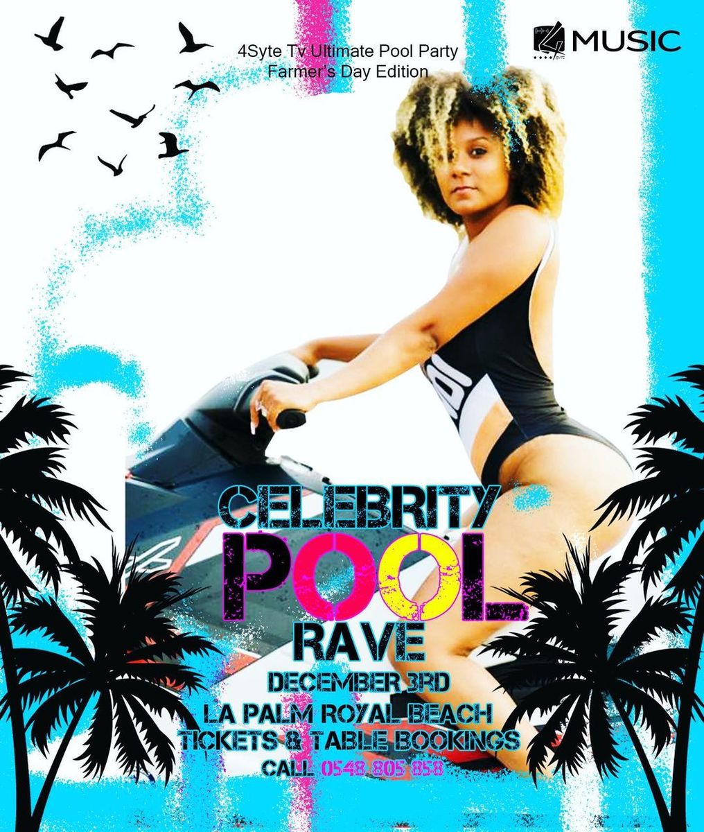 It’s the ultimate 4syte tv pool party … Mona and friends this Friday 3rd December , Farmers Day edition at the La Palm Royal Beach Hotel from 11am