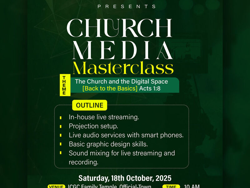 Church Media Masterclass comes to equip Churches, Pastors and Media Teams with digital skills to thrive in today's digital space for Ministry work.
