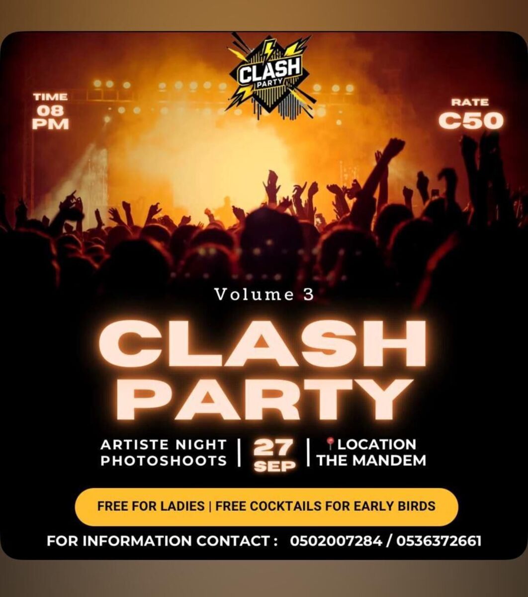 (CLASH PARTY VOLUME 3) Event Program: Artists Night, Photoshoot. Location: Dansoman Exhibition round about ,The Mandem Lounge next to Chickenman Pizzaman. Come PARTY with The Very Naughty Dansoman Boys, EL Kay and a many more artists, tell a friend to tell another friend