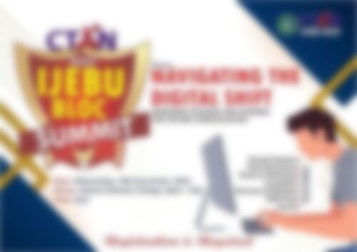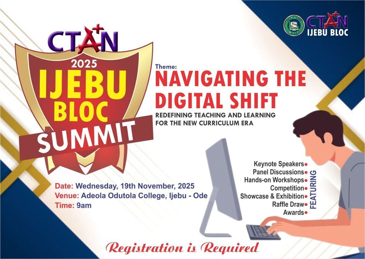 ๐ Join the Future of Education! The CTAN Ijebu Bloc Summit 2025 is a dynamic gathering designed to empower educators, tech enthusiasts, and innovators. Dive into keynote sessions, interactive workshops, panel discussions, and exciting competitionsโall aimed at redefining teaching for the digital age. Discover new tools, network with industry leaders, and participate in engaging activities that prepare teachers and students for the evolving curriculum. Whether you're a teacher, student, or education advocate, this summit offers a unique platform to learn, collaborate, and lead in digital education. Don't miss out on the chance to be part of Nigeria's vibrant educational revolution! ๐โจ
