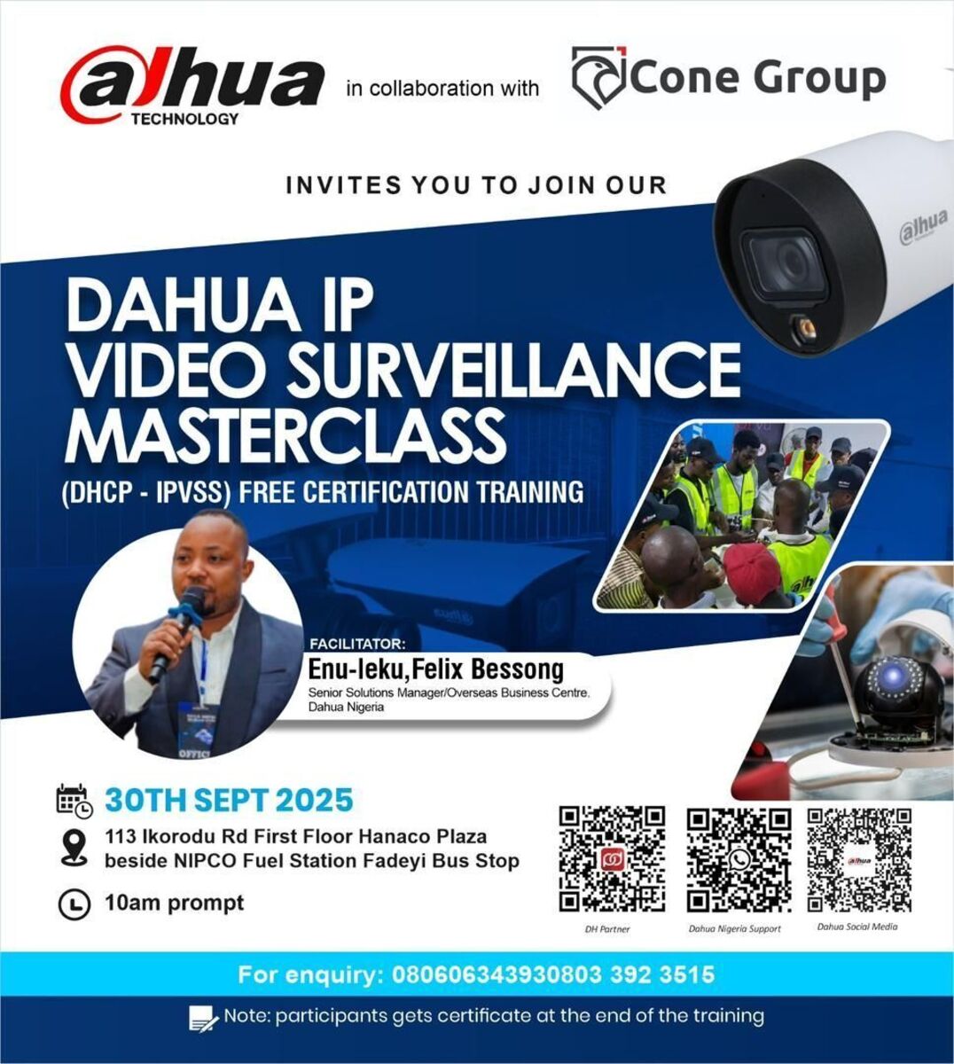 🔒 Enhance your security expertise with our FREE DAHUA IP Surveillance Masterclass! In collaboration with CONE GROUP, this hands-on training is designed for security professionals, CCTV installers, and system integrators eager to stay ahead in surveillance technology. 🚀