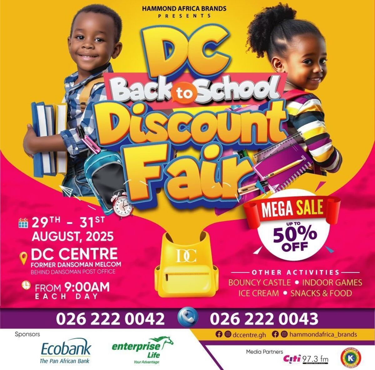 🎒📚 Get ready for the upcoming school season with the DC Back to School Discount Fair! This exciting event offers a fantastic opportunity for parents and students to enjoy exclusive discounts on school supplies, uniforms, gadgets, and more. Join us for a fun-filled day of shopping, special offers, and community engagement at a convenient location in Dansoman. Don't miss out on the biggest back-to-school sale of the year — perfect for preparing your kids for success! 🎉✨