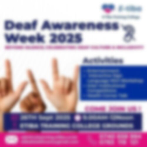 Join us for Deaf Awareness Week 2025 β a vibrant celebration of Deaf culture and inclusivity! π Get ready for an inspiring morning filled with live entertainment, interactive sign language workshops, inter-institutional competitions, health talks, and more at Etiba Training College. Whether you're fluent in sign language or just curious, this event is for everyone who wants to learn, connect, and celebrate the Deaf community.