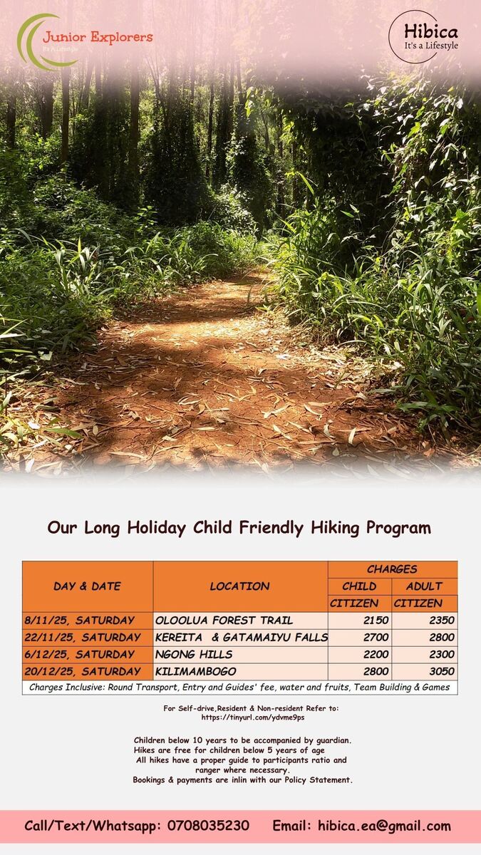 Join us for an exciting adventure in the December holidays with the Junior Explorers program at Oloolua Forest! ๐ณโจ This series of four easy to moderate hikes is designed to inspire curiosity, outdoor learning, and physical activity for children over 8 years old. The hikes are spaced out every two weeks and take place in accessible, scenic locations within the Nairobi Metropolitan region.