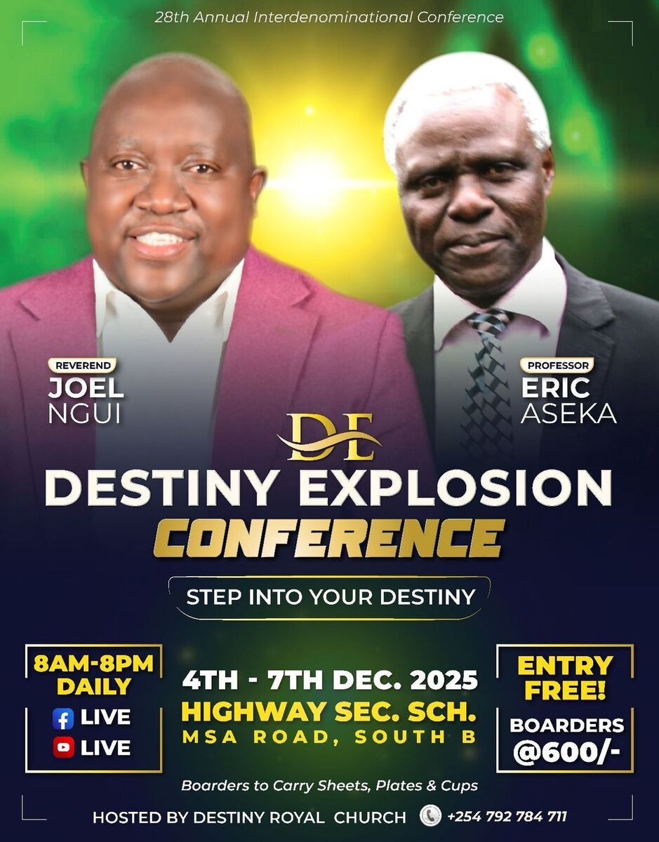 Prepare for a powerful spiritual encounter led by renowned Minister and Apostle Professor Eric Aseka, as he guides attendees into their prophetic destiny. Join believers from across Nairobi and beyond for a day of prophetic Word, worship, and divine empowerment.