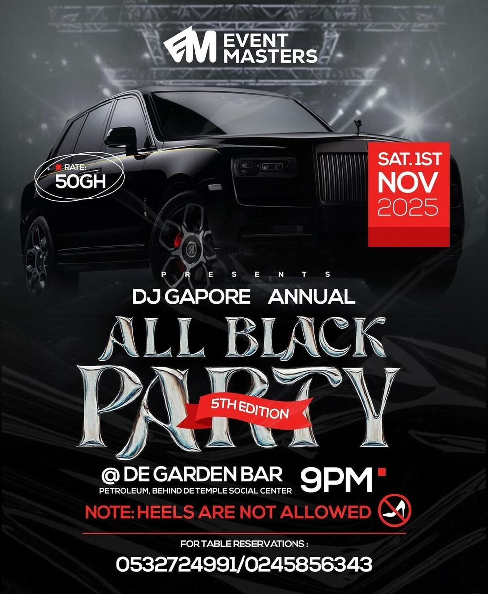 🎉 Get ready for the ultimate night of style and vibe at the DJ GAPORE ANNUAL ALL BLACK PARTY! Experience an electrifying atmosphere filled with epic music, great company, and a night to remember. Whether you're there to dance, unwind, or just enjoy the scene, this event promises a sophisticated all-black dress code and unforgettable moments. Don't miss out on celebrating 5 fantastic years on the decks with top DJs spinning the hottest tracks. Reserve your tickets now and join us for a night of pure energy and style! 🚀