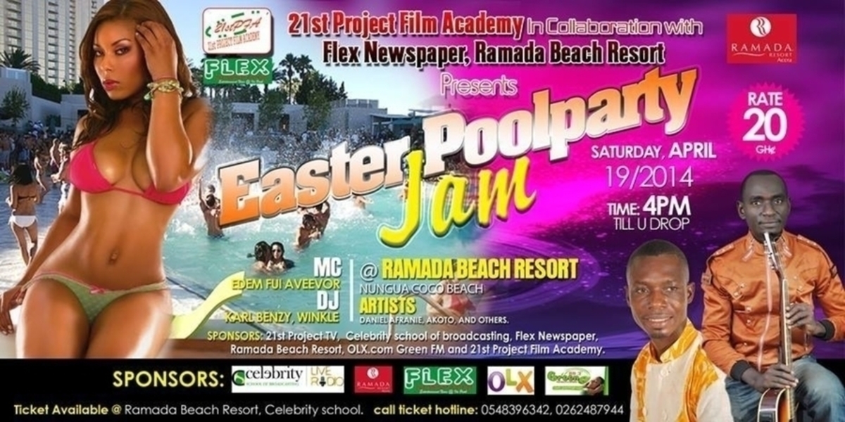 On the 19th April, Ramada Beach Resort Coco Beach Will Come to a Stand Still as Flex Newspaper, 21st Project Film Academy and Ramada Resort….Present…Easter Poolparty Jam.