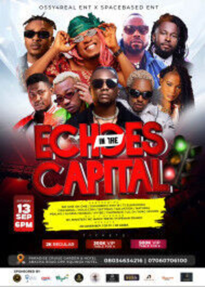 πΆ Echoes in the Capital promises an unforgettable night filled with vibrant music and energetic performances. Set amidst the lively Paradise Cruise Garden and Hotels on Abacha Road, this event invites music lovers and fun-seekers alike to immerse themselves in a lively atmosphere where talented artists will serenade and energize the crowd. Whether you're dancing the night away or simply enjoying the company of friends, this event is your perfect escape into great vibes, rhythmic beats, and memorable moments. Don't miss your chance to be part of this captivating musical experience! ππ€