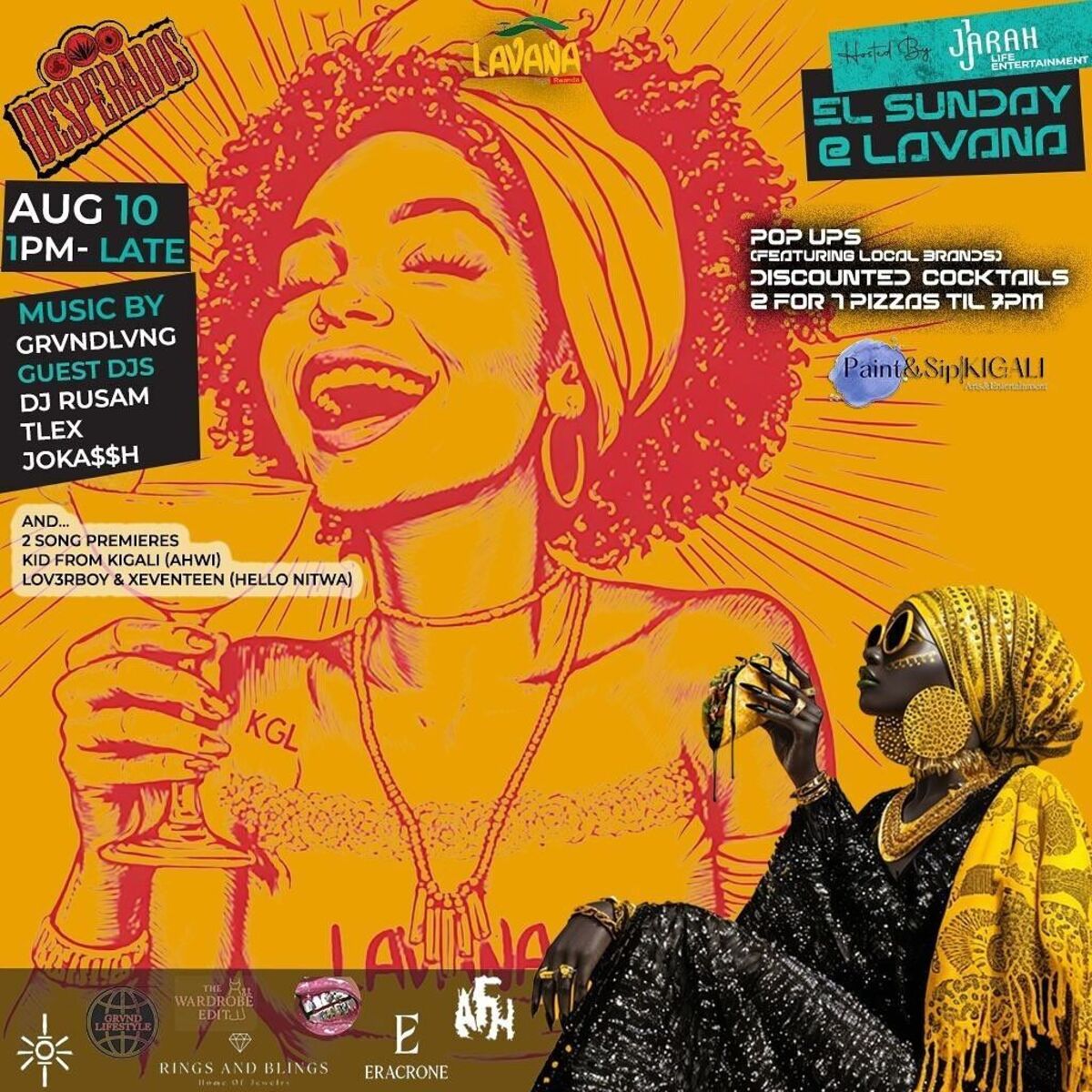 π El Sunday at Lavana promises an unforgettable Sunday experience filled with vibrant music, exciting deals, and a lively atmosphere! Join us at Lavana in Kimihurura for a day of fun, dancing, and socializing. Enjoy live DJ sets from GRVNDLVNG, sip on 2-for-1 cocktails and pizzas, explore creative pop-up stalls by local brands, and connect with great people in a fantastic setting. Whether you're in the mood to dance, relax, shop, or simply vibe out, El Sunday is the perfect way to end your weekend on a high note! πΆπποΈ