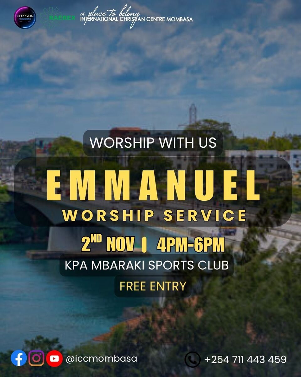 Join us for EMMANUEL SERVICE, a heartfelt worship gathering happening every first Sunday of the month. Experience a vibrant and soul-stirring atmosphere as the community comes together to praise and worship Emmanuel, the God With Us. This inspiring service offers a space for spiritual renewal, fellowship, and celebrating faith in the lively city of Mombasa. Whether you're seeking spiritual upliftment or community connection, this event promises an uplifting experience filled with praise, prayer, and unity. Don't miss out on this monthly spiritual encounter! 🎶🙏✨