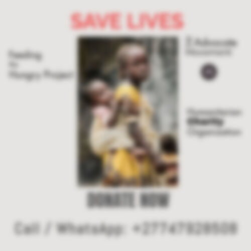 Feeding the Hungry Charity Food Program: Call to Volunteer Action. Call /WhatsApp: +27747928508. Change Makers, a non-government charity organization initiative event gathering, meant to raise awareness and funds donations to make a change and impact.