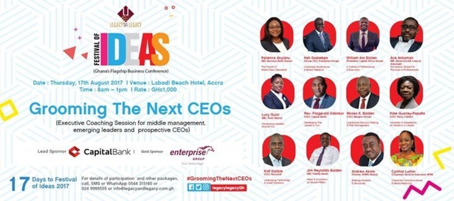 The 11th edition of Ghana's flagship business conference, Festival of Ideas 2017 is scheduled to take place on Thursday, 17th August, 2017 at Labadi Beach Hotel in Accra under the broad theme of “SUCCESSION PLANNING.”
