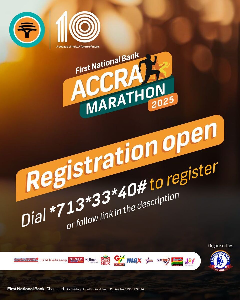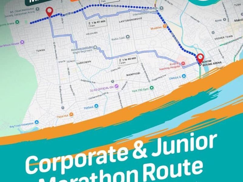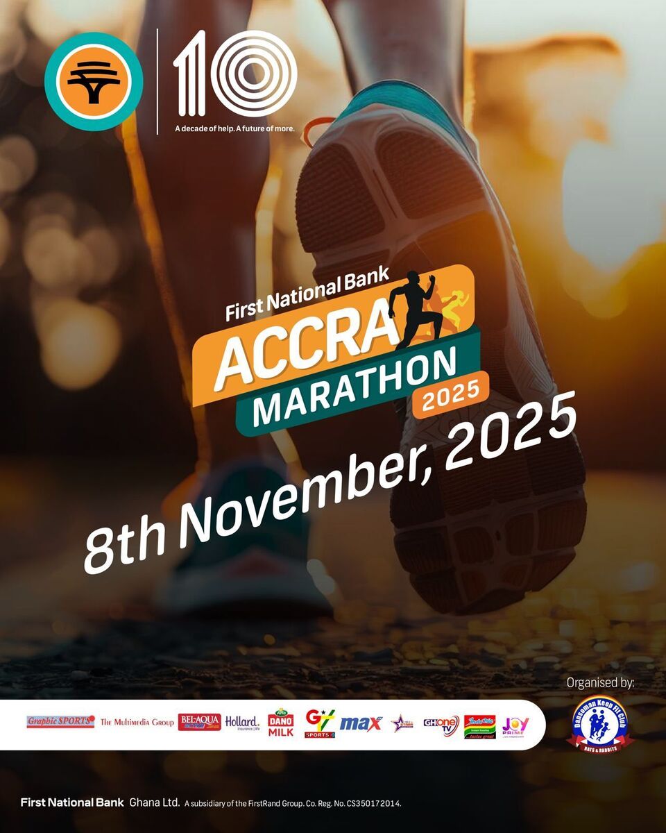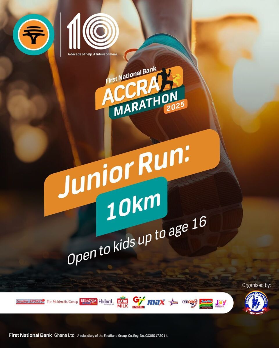 First National Bank Accra Marathon is the most prolific marathon in Ghana . The marathon ( previously known as the Accra Milo Marathon is an offspring of the Dansoman Keepfit club . There are 3 categories of run including ; Mass run - 21.1km. Junior run and Corporate 10km .
