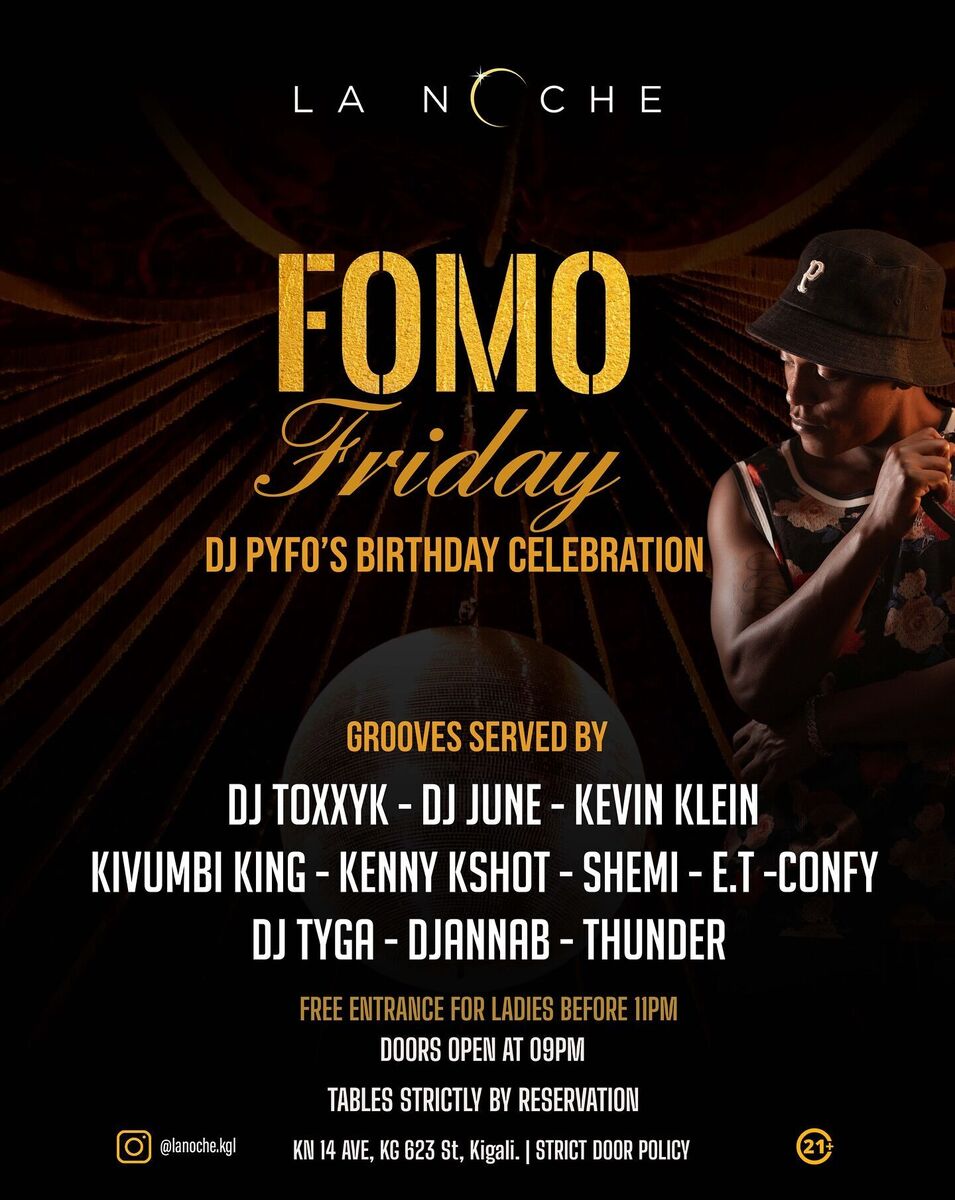๐ Join us for an unforgettable night of celebration and vibrant entertainment! Pyfo, our renowned DJ, is spinning hot tracks to light up the dance floor. Whether you're here to party, network, or simply enjoy a lively atmosphere, this event promises an electrifying experience. Don't miss out on the birthday heat, exclusive vibes, and great company at La Noche! ๐ถ๐ฅ