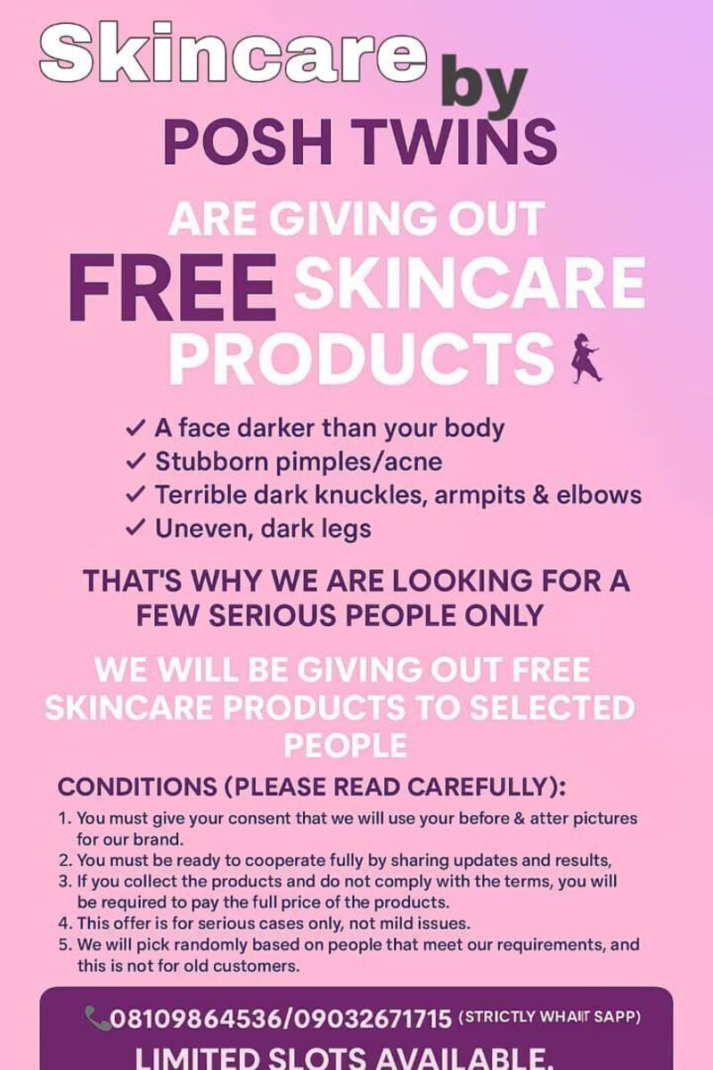 Skincare by Posh Twins are giving out FREE Skincare Products π¨π yes, absolutely FREE!